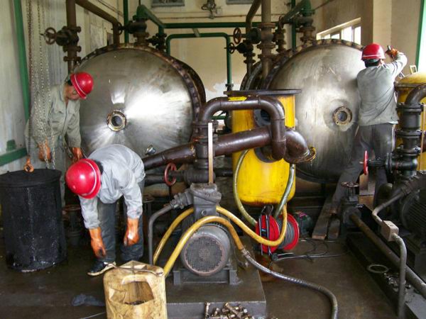 | 理冷卻塔清洗-水處理及維修保養(yǎng) 由于冷卻系統(tǒng)是開(kāi)放式系統(tǒng),長(zhǎng)期與空氣接觸,容易產(chǎn)生灰塵。而且系統(tǒng)水溫在32~37攝氏度之間,較易形成水垢且適合藻類生長(zhǎng),所以,冷卻塔需定期進(jìn)行清洗。 機(jī)械通風(fēng)式冷卻塔主要由塔體、填料、布水器、通風(fēng)設(shè)備、集水池等構(gòu)成。 1、冷卻水系統(tǒng)清洗(包括冷卻塔、管道等) 2、冷卻塔的物理清洗及殺菌滅藻(填料清洗、更換) 3、整個(gè)系統(tǒng)的殺菌滅藻處理和全有機(jī)化學(xué)清洗。 4、整個(gè)系統(tǒng)的預(yù)膜緩蝕處理和日常水質(zhì)維護(hù) | 鍋爐清洗-水處理、蒸汽鍋爐化學(xué)清洗 為使鍋爐系統(tǒng)在最優(yōu)狀態(tài)下運(yùn)行,就必須對(duì)鍋爐系統(tǒng)的水系統(tǒng)進(jìn)行專門的化學(xué)藥物處理:清除水垢、銹蝕和防腐蝕處理 1、化學(xué)清洗:鍋爐的清洗是對(duì)鍋爐對(duì)流管、過(guò)熱器管、空氣熱器、水冷壁管水垢、鐵銹進(jìn)行清洗,加入化學(xué)清洗劑將系統(tǒng)內(nèi)的浮銹、垢、油污清洗分散排出,還原成清潔的金屬表面,根據(jù)不同的工作條件有停爐清洗和不停爐清洗兩種方式 2、日常保養(yǎng):日常保養(yǎng)是對(duì)鍋爐水進(jìn)行水質(zhì)處理,采用自動(dòng)加藥系統(tǒng)加入GR-943C鍋爐阻垢靈、GR-201克垢丹,避免金屬生銹,防止鈣鎂離子結(jié)晶沉淀。 |